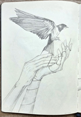I would like to give you an in-depth insight into my sketchbooks. Some of the designs served as the basis for drawings and paintings in my portfolio. However, many are also attempts and experiments that remained hidden deep in my sketchbooks.